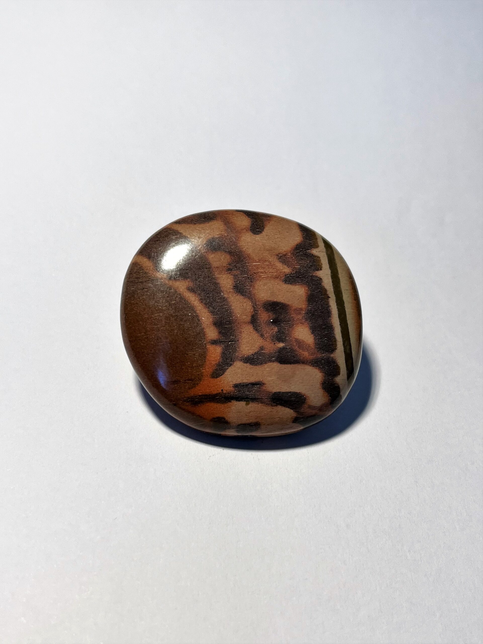 Jättefin mönstrad platt sten som heter Jaspis Skriftsten, kommer från Australien