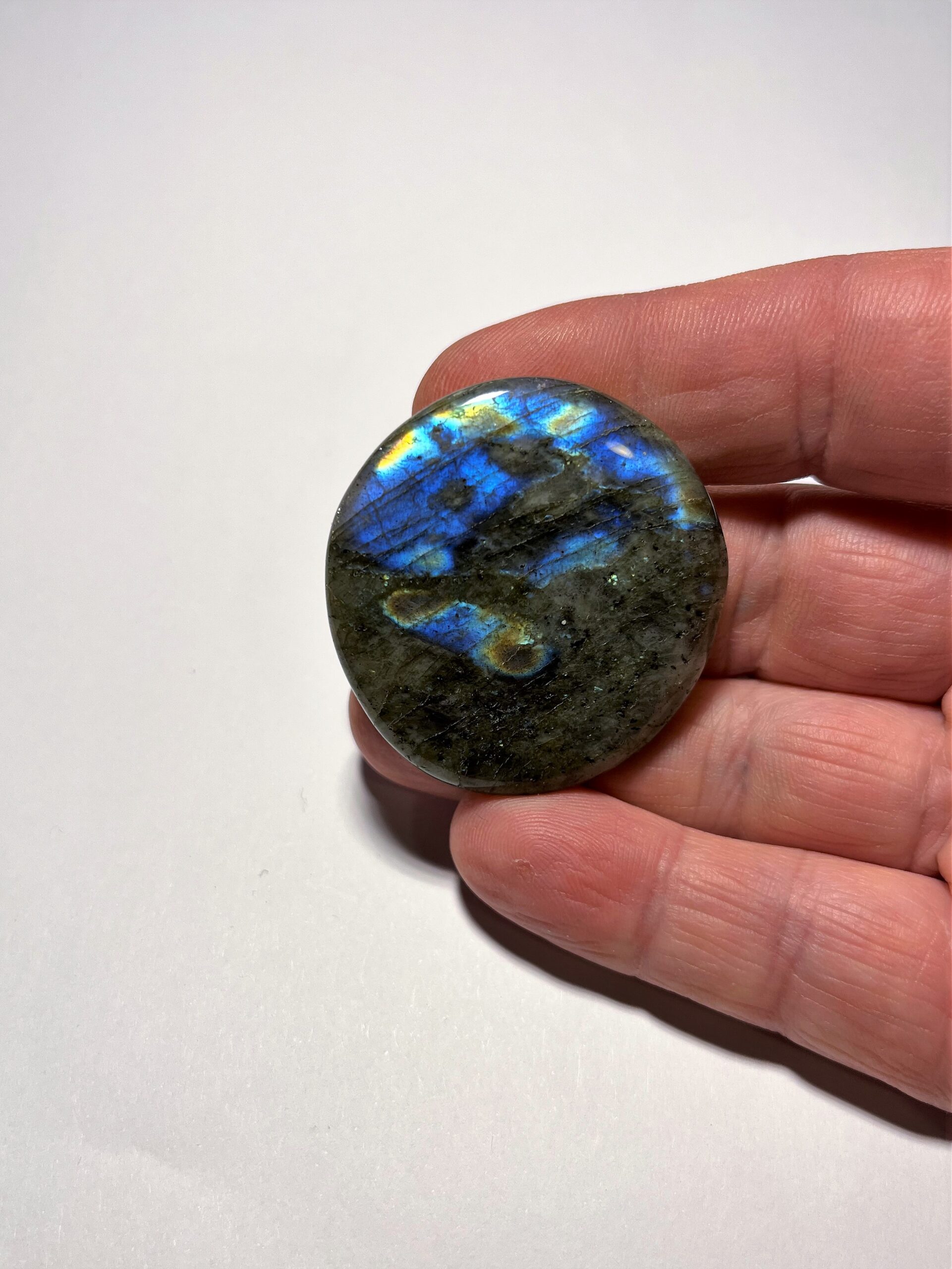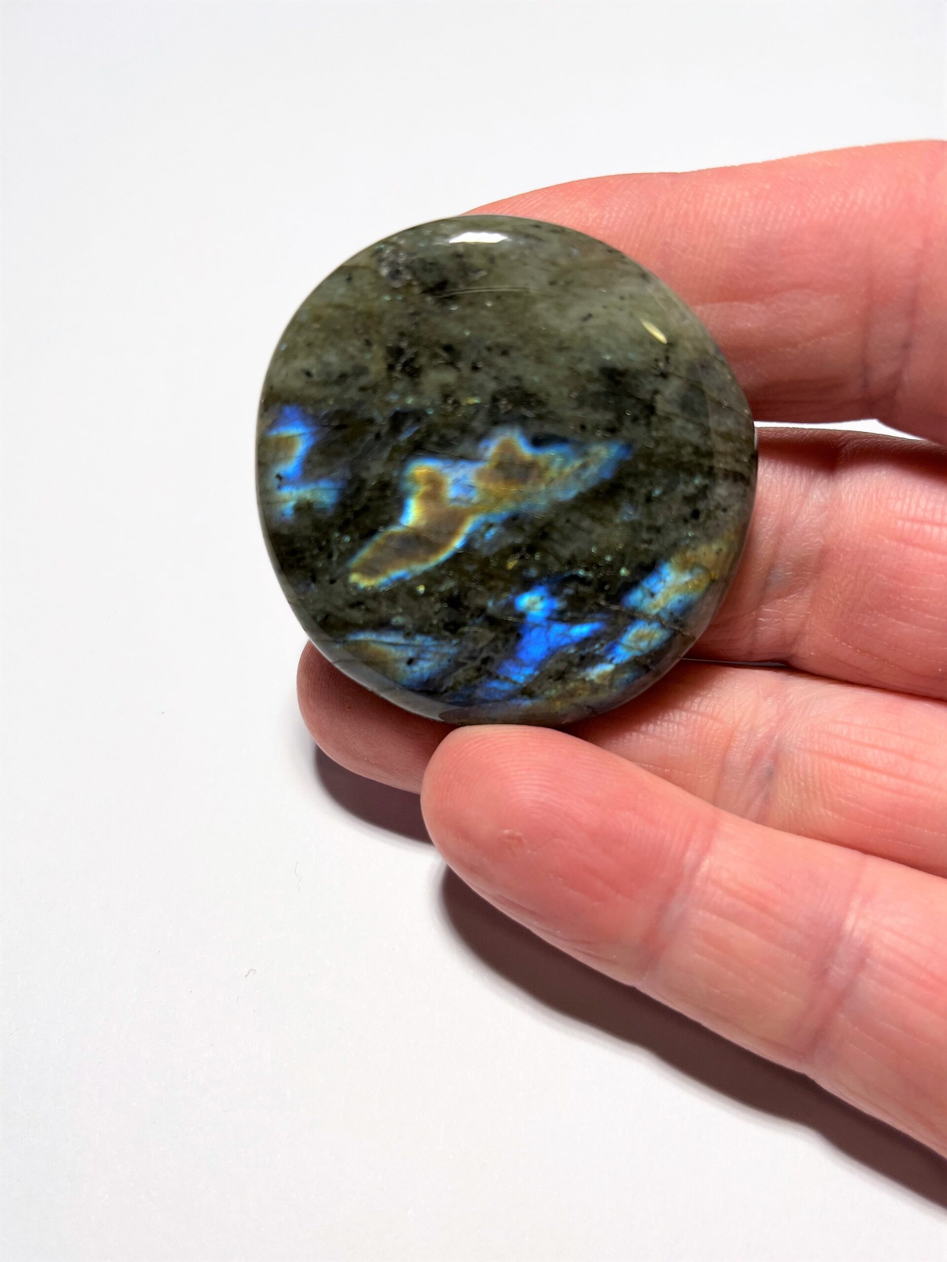 Labradorit sten platt från Madagaskar, vackra färger i ljus från rätt vinkel